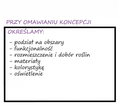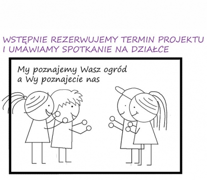 | Informacje na temat sposobu realizacji naszych usług. 1. Wizja lokalna działki oraz rozmowa odnośnie Waszych oczekiwań, funkcji jaką ma pełnić ogród, Waszego gustu, ulubionych materiałów, roślin, barw itp. Spotkanie takie jest niezobowiązujące i nieodpłatne na terenie Trójmiasta i okolic. 2. Określamy termin rozpoczęcia prac projektowych i podpisujemy umowę. 3. Sporządzamy dokumentację fotograficzną. Projekt sporządzany jest w oparciu o dostarczony przez Was zwymiarowany rzut działki. Jeżeli takim nie dysponujecie wykonujemy samodzielnie pomiary działki oraz jeżeli jest taka potrzeba pomiary niwelacyjne. 4. Przygotowujemy wstępną koncepcję ogrodu. Przeważnie trwa to 3-4 tygodnie. Koncepcja wykonywana jest w kolorze. Do koncepcji wykonywane są wizualizacje. Omawiając koncepcję opisujemy zastosowane materiały, rozwiązania, kolorystykę i ogólne założenia. 5. Zostawiamy Wam czas na przeanalizowanie koncepcji, przeważnie 7 dni. Poprawki ustalamy najczęściej mailowo lub telefonicznie. Jeżeli jest taka potrzeba spotykamy się osobiście. 6. Po akceptacji wstępnej koncepcji przygotowujemy szczegółowy spis roślinności oraz koncepcję oświetlenia iluminacyjnego. 7. Zostawiamy Wam czas na przeanalizowanie spisu roślin i koncepcji oświetlenia, przeważnie 7 dni. 6. Po akceptacji i ustaleniu ostatecznego kształtu projektu sporządzamy dokumentację. Dokumentacja zapisana jest na karcie pamięci USB. Dokumentacja zawiera: - część opisową
